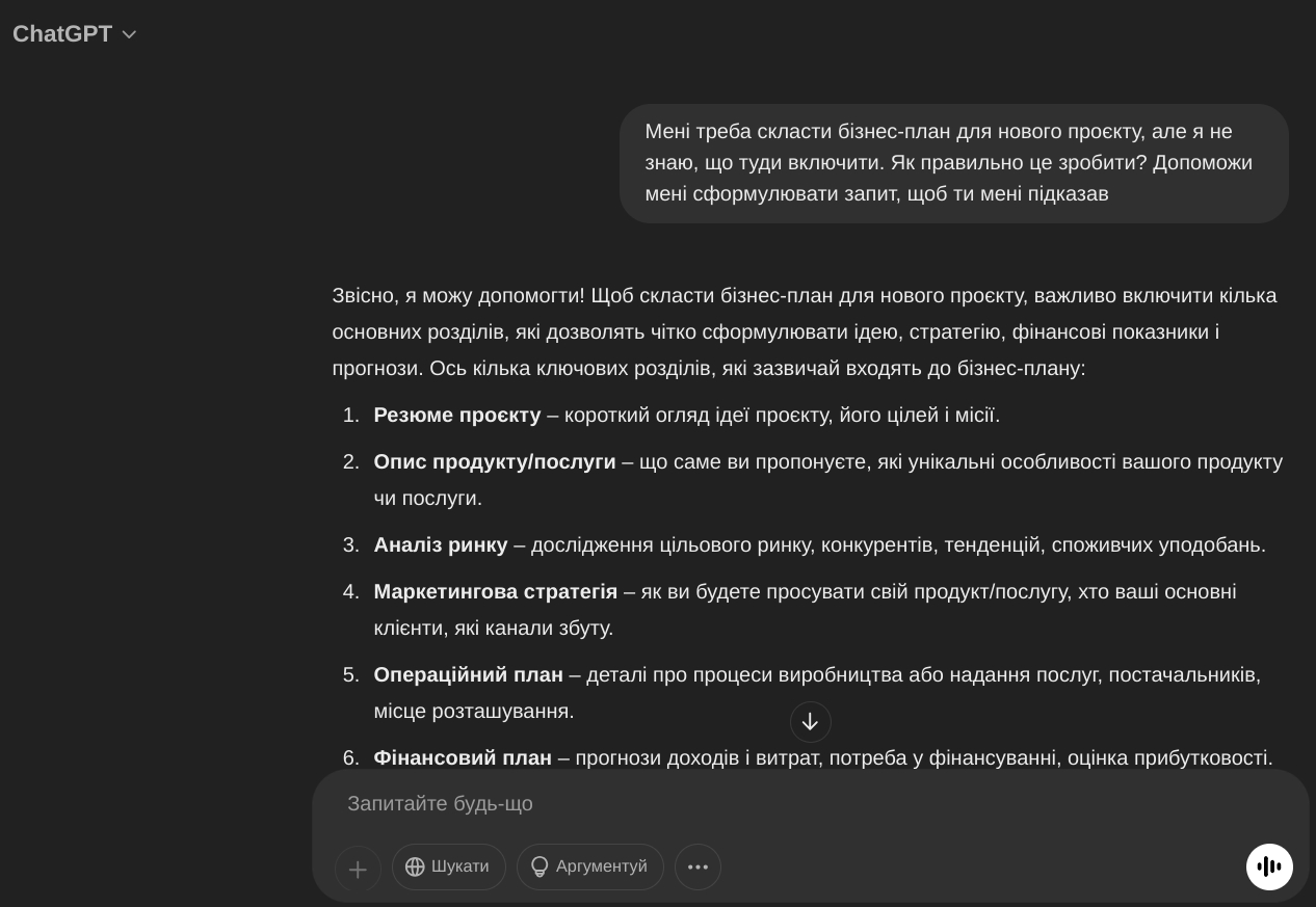 ChatGPT уточнить деталі (бюджет, ціль, аудиторія) і видасть структуру чи приклад. Трактуй його як друга, який завжди готовий допомогти. Не бійся писати просто – він зрозуміє.